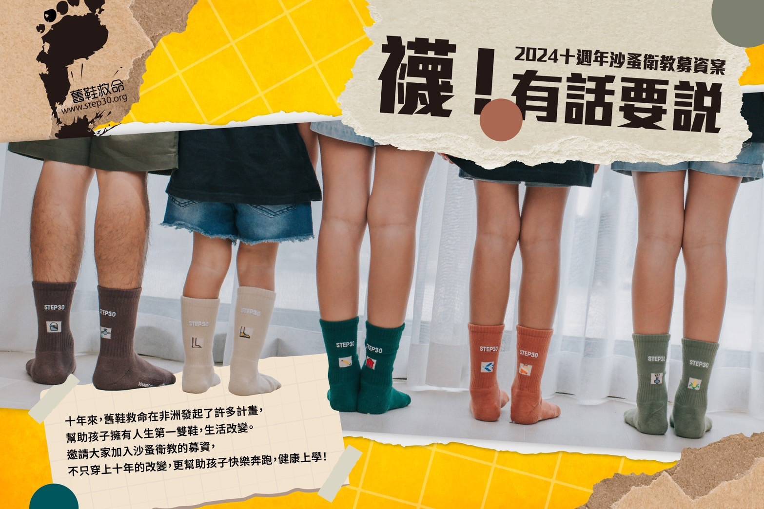 本襪款由舊鞋救命與 MIT品牌 Soundsgood 聯名合作推出。在每一雙素色的襪子上,我們設計了不同的圖案,精巧呈現每個計畫從before到after帶出的改變,讓您在穿上這十年改變的同時,也能支持沙蚤衛教團隊幫助更多需要的孩子。